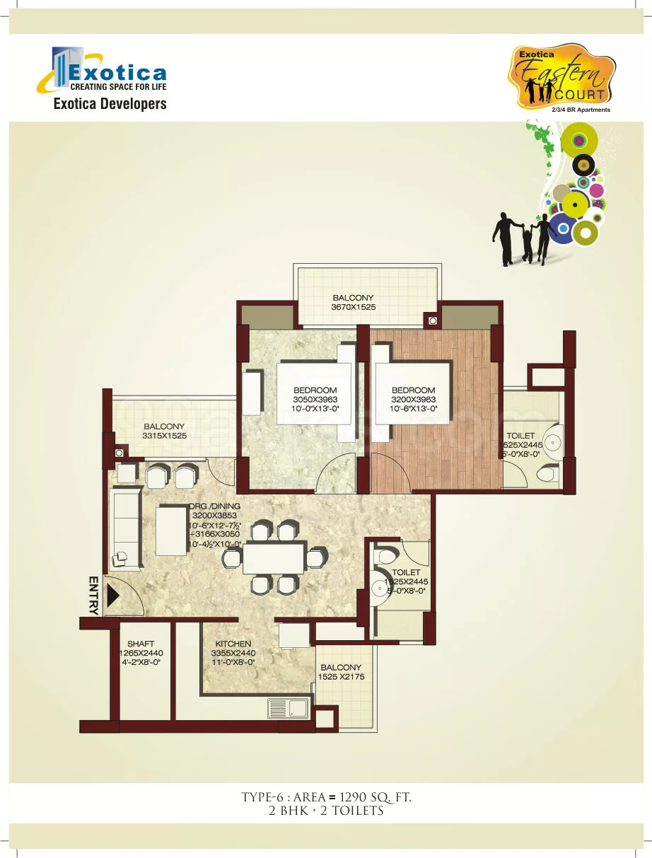 2BHK 2Baths Flat/Apartment for Sale in Exotica Eastern Court, Crossing Republik, Ghaziabad